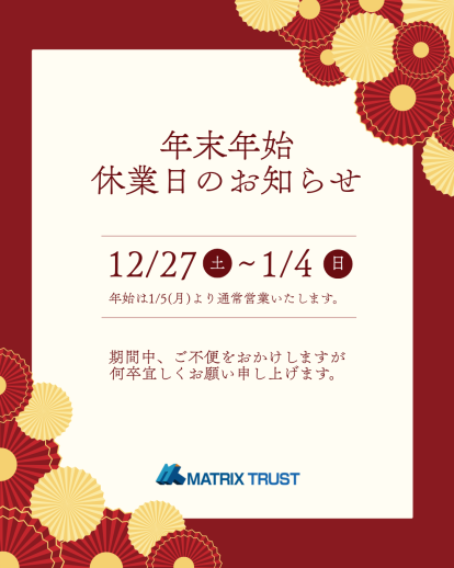 2025年 年末年始休業のお知らせ|不動産相続の相談窓口|株式会社マトリックストラスト