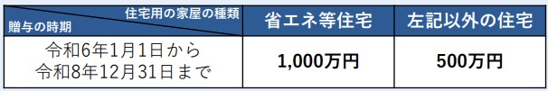 ※「省エネ等住宅」とは家屋の区分の応じ、省エネルギー性能、耐震性能またはバリアフリー性能のいずれかの基準(省エネ等基準)に適合する住宅用の家屋であることにつき、住宅性能証明書など一定の書類を贈与税の申告書に添付することにより証明されたものをいいます。